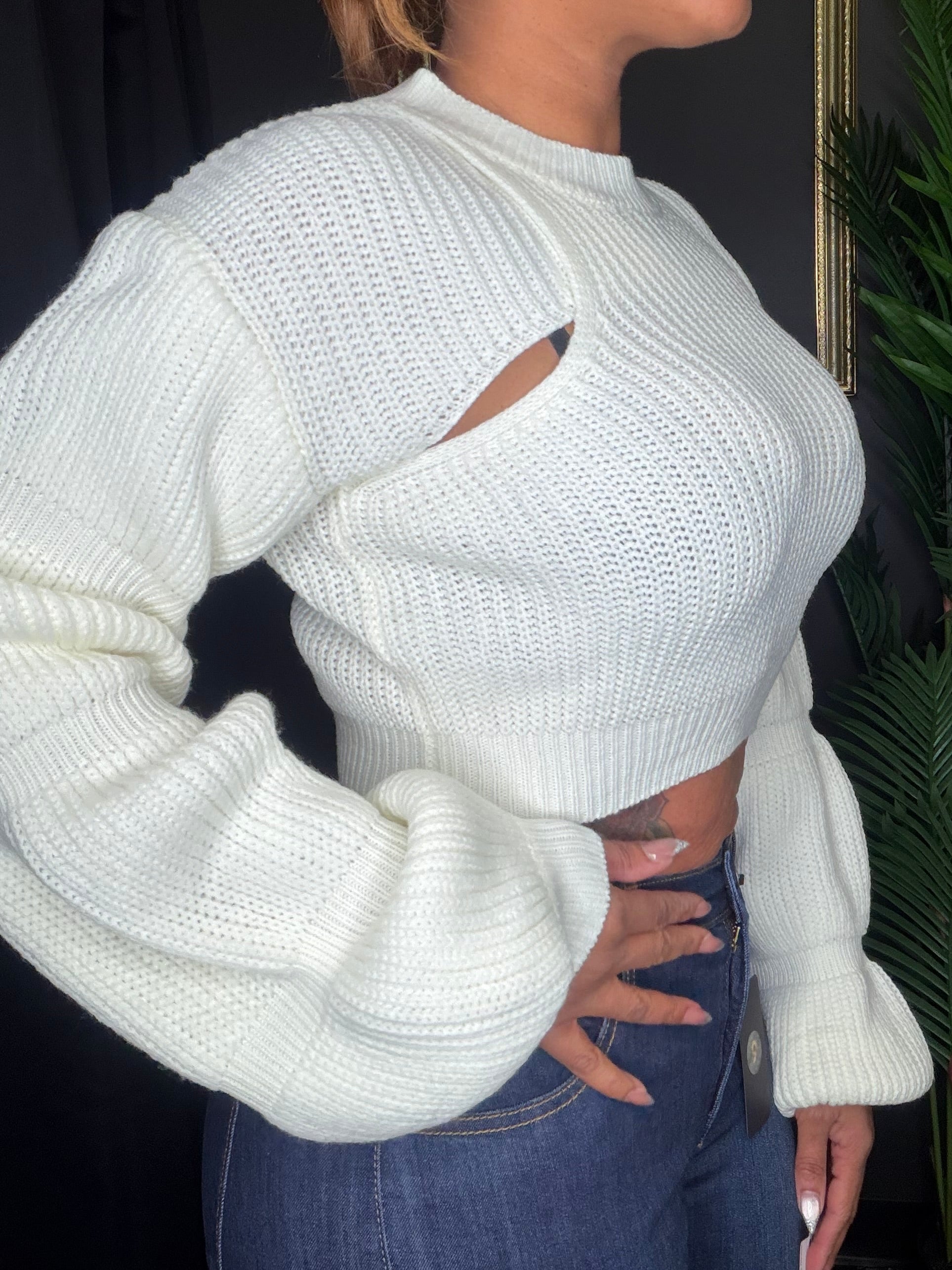 Cream Puffy Knitted Long Sleeve Shirt